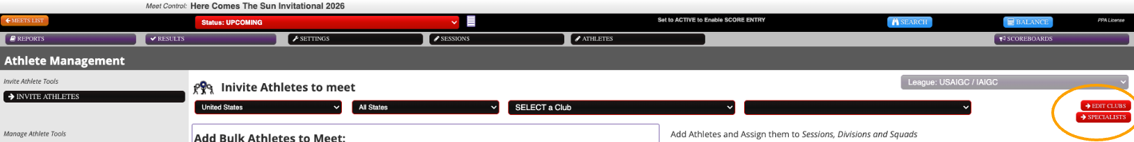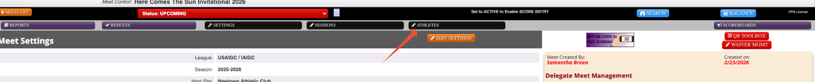- Open your meet under Meet Control.