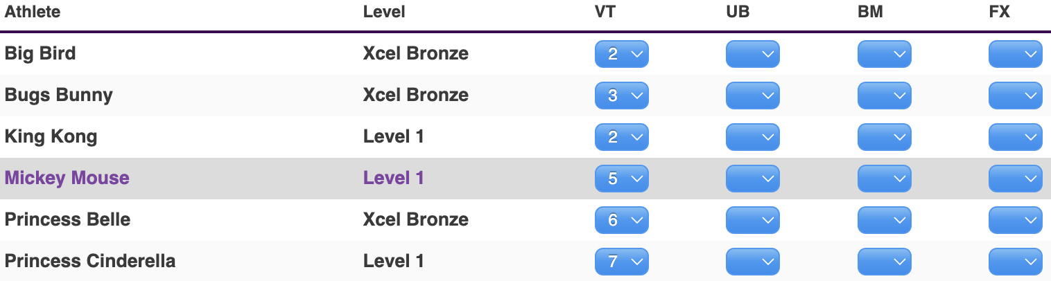 This will show all the athletes that are on your team right now. (If you do not see any athletes, please follow these directions How to Register a New Athlete / Existing Athlete).