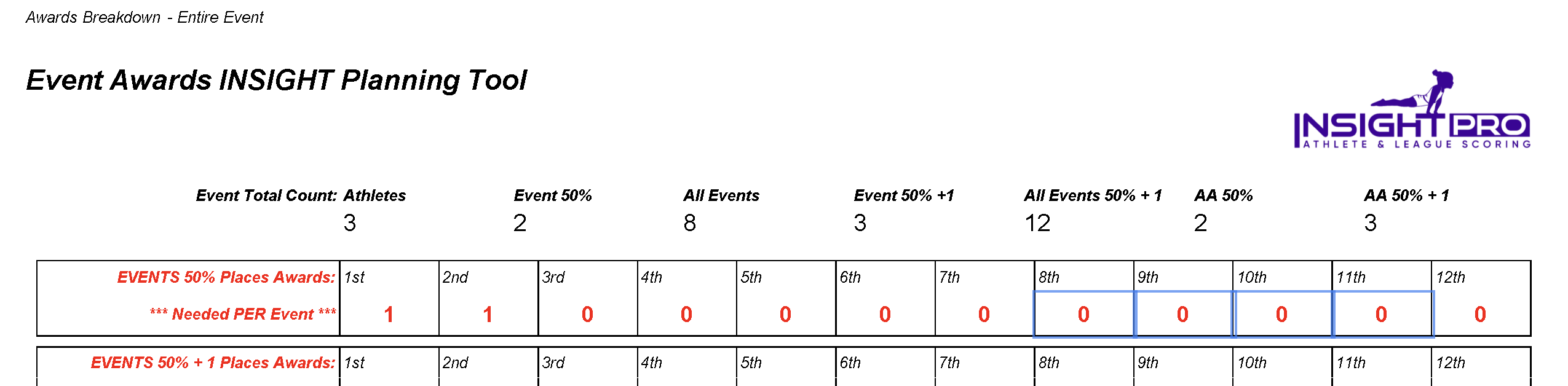 Awards Level Break Down - This report will provide you a breakdown of how many awards you will need.