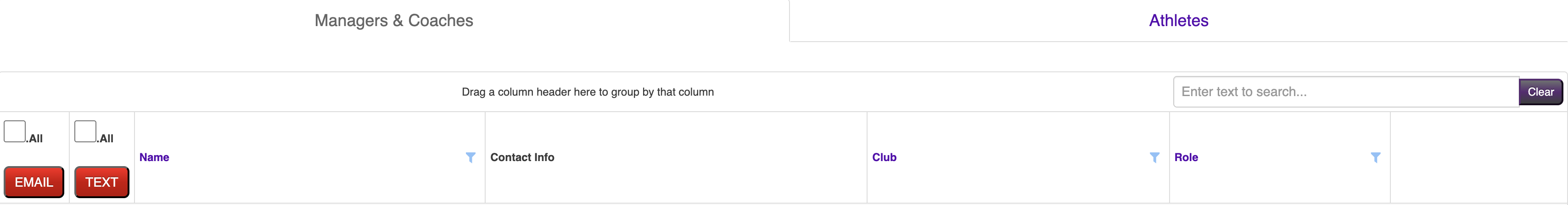 Contacts & Communication - This report is used if you need to contact all the coaches or athletes.