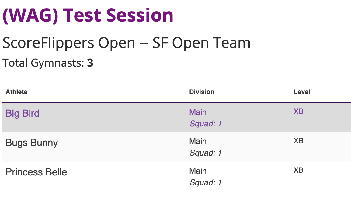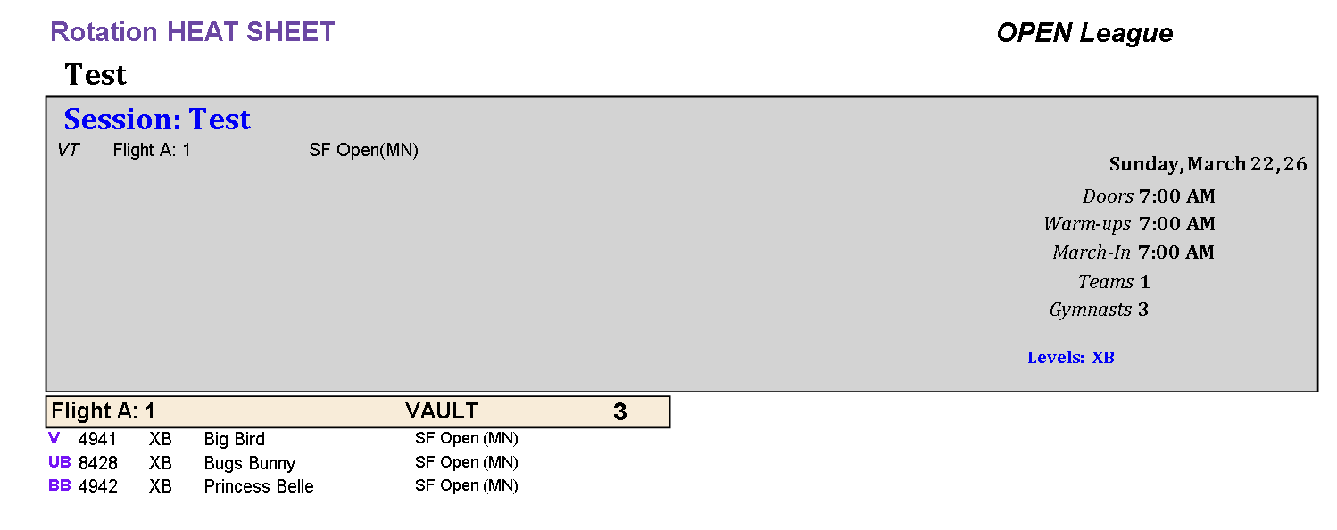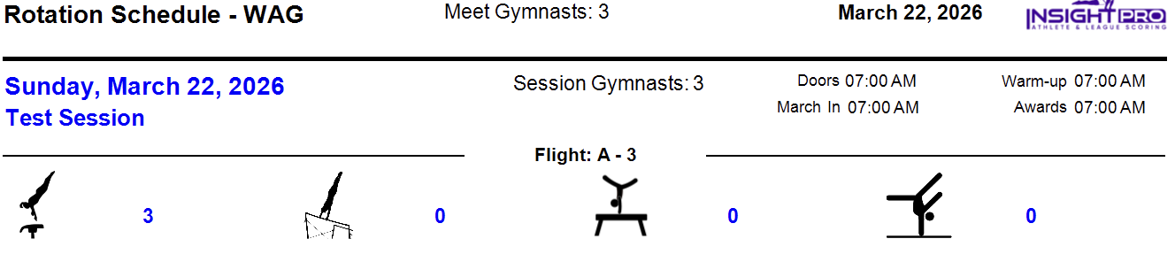 Rotation Reports - This will state how many athletes are starting on what event and by flight.
